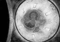 Although partially damaged by the construction of the parvis in the sixteenth century, the frescoes were afforded a greater measure of protection from the climate by that same construction, and they have survived relatively intact. They are, in fact, excellent examples of the work of one of the most important medieval Russian artists, Dionisii, who with the assistance of his two sons painted the interior of the Nativity Cathedral in 1502 (10). The fact that such a renowned artist, accustomed to commissions for frescoes and icons from the court of Grand Prince Ivan III/ should engage in extensive work far to the north is further evidence of the close relations between these monasteries and the center of political and ecclesiastical power in Moscow. Indeed/ the hegumen who commissioned the rebuilding of the church in brick and the painting of the frescoes was Ioasaf/ former archbishop of Rostov and a member of one of Russia's most prominent noble families/ the Obolenskiis.