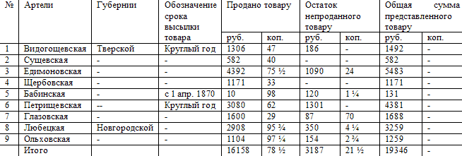 Продажи сыра и масла артельных сыроварен с 1866 по 1870 г.