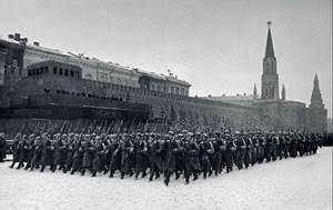 А 7 ноября 1941 г. наш батальон принял участие в параде, посвященном двадцать четвертой годовщине Великого Октября. Этот парад, который состоялся, когда враг стоял у ворот столицы, вошел в историю Великой Отечественной войны против немецкого фашизма. Он показал всему миру, что борьба еще не окончена, что она будет продолжаться до полной победы над агрессором.