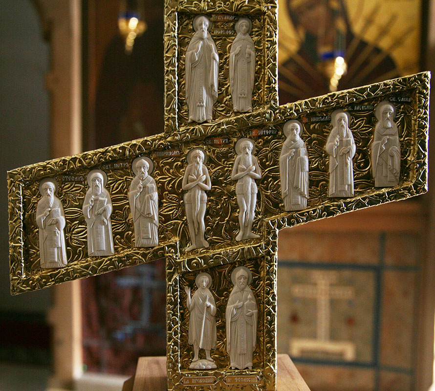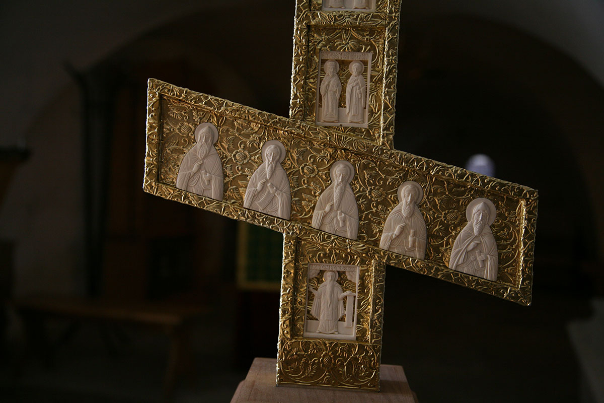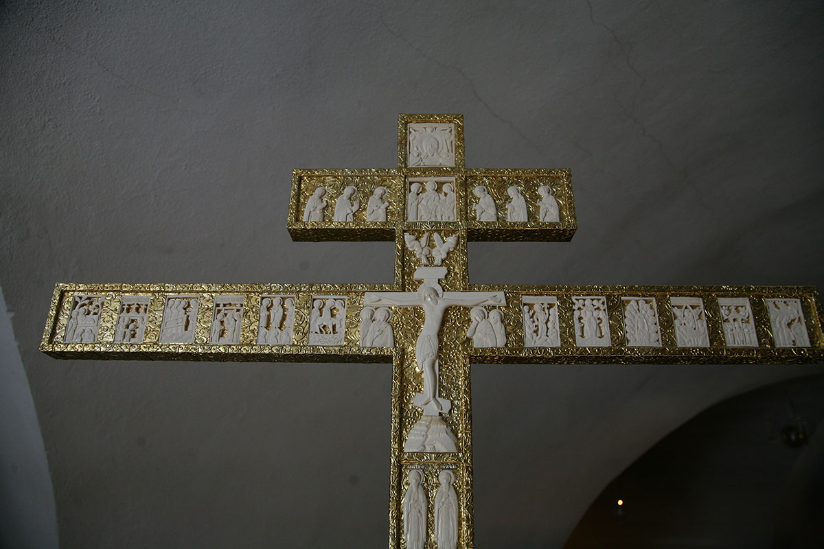 Андрей СальниковВозрождение святыниКиликиевский крестКиликиевский (его еще называют Киликийским) крест – запрестольный выносной восьмиконечный крест, выполненный из дерева и украшенный резными на кости образами святых и позолоченной басмой. По преданию, этот крест был в XIV веке принесен в Вологду преподобным Димитрием Прилуцким, основателем Спасо-Прилуцкого монастыря, небесным покровителем Русского Севера. До 1924 года святыня благоговейно хранилась в обители преподобного Димитрия, а когда монастырь закрыли, древний крест перенесли в краеведческий музей (ныне – Вологодский историко-художественный и архитектурный музей-заповедник). Несколько лет назад Игумен Дионисий (Воздвиженский), бывший в то время наместником Спасо-Прилуцкой Димитриевой обители, решил воссоздать святыню, чтобы вернуть для богослужебной жизни. Готовый крест освятили 24 февраля 2014 года, в день память преподобного Димитрия Прилуцкого после архиерейской Божественной литургии в нижнем храме Спасского собора Спасо-Прилуцкого Димитриева монастыря. Архиепископу Вологодскому и Великоустюжскому Максимилиану сослужили одиннадцать священников, в том числе наместники мужских монастырей епархии. Разделить радость обретения святыни приехали священники из Санкт-Петербурга, из Мурманской митрополии. В тот же день в актовом зале монастыря собрались все, кто был занят в воссоздании Киликиевского креста: священники, историки, художники, благотворители. Вспоминали пройденное, делились открытиями – оказывается, загадок в истории Киликиевского креста гораздо больше, чем информации. Многое еще предстоит узнать, в том числе и название – почему вологодский крест носит имя греческой провинции Киликии, неизвестно. Когда начинали работу, решили сразу: это не будет точная копия музейного экспоната. Эксперты-искусствоведы определили, что крест, хранящийся в музее-заповеднике, сделан никак не ранее первой трети XVI века. Отец Дионисий полагает, что это не противоречит церковному преданию, а лишь дополняет его. По его мнению, крест, который преподобный Дионисий принес с собой из Переславля Залесского, был утрачен очень давно. Вряд ли он был искусно украшен – и басма, и резные иконы появились уже потом, когда почитание вологодского преподобного стало повсеместным. Завершена очень сложная работа, в которой участвовали лучшие мастера Москвы и Вологды. Крест сделан из кипариса – дерева, которое было одной из основ Креста Господня. Для резных иконок использовали бивень мамонта, ушло 8 килограммов этой ископаемой кости. 84 миниатюрных образка украшают святыню. Здесь и евангельские сюжеты, изображения святых – среди них немало вологодских преподобных. На прежнем кресте не вся резьба сохранилась, кое-что утрачено. Сейчас копия Киликиевского креста, сделанная умелыми и благочестивыми руками для молитвенного поклонения, прямо сияет. – От имени нашего музея, – говорил генеральный директор Вологодского музея-заповедника Александр Суворов, – сердечно благодарю всех, кто связан с этим проектом. Мы гордимся, что являемся вашими современниками! Воссозданная святыня благоговейно хранится в алтаре Спасского собора. Как знать, может быть, удачный опыт сотрудничества музейных работников, церкви и мастеров и будет продолжен. Древнерусская традиция крестов с резьбой когда-то была 