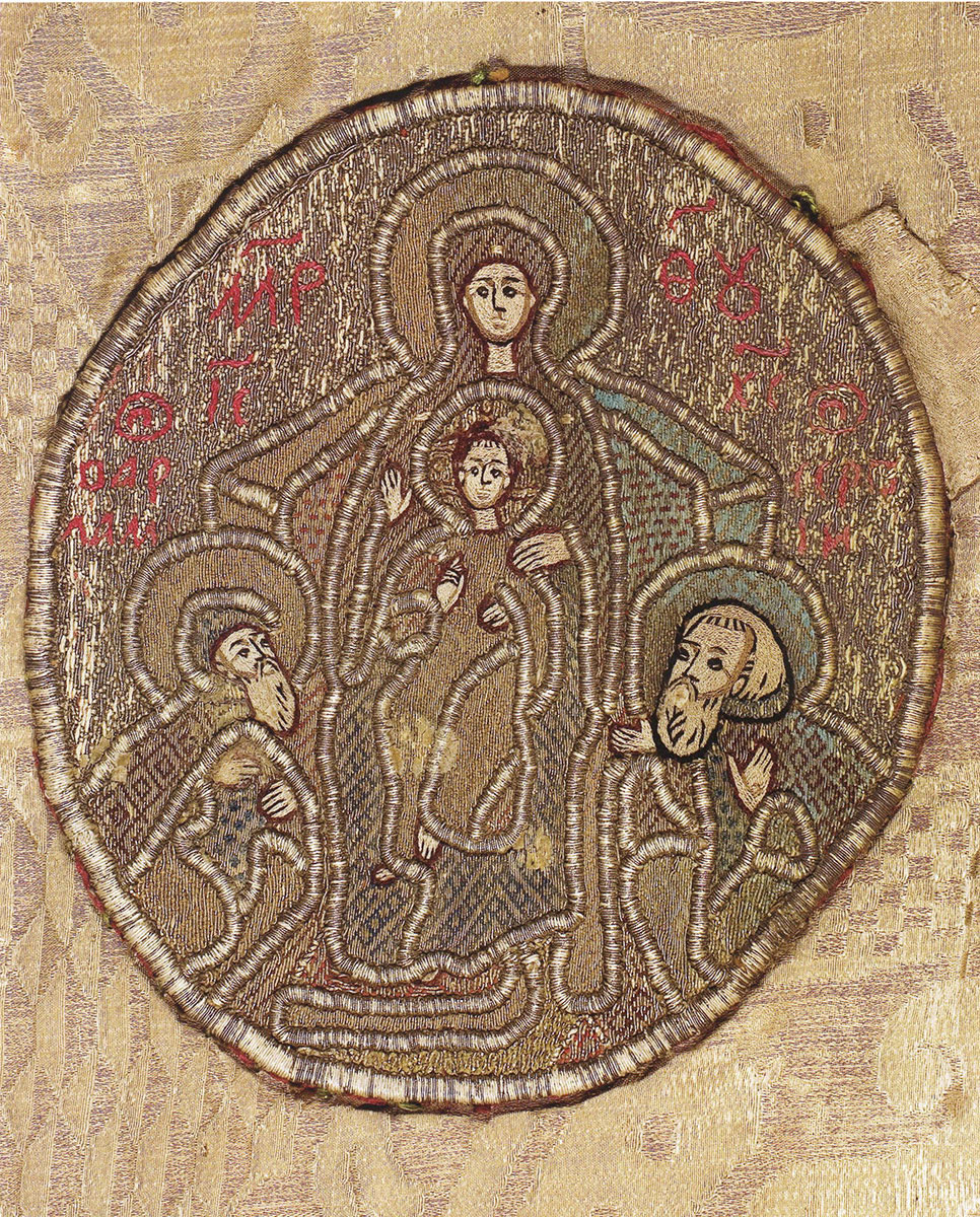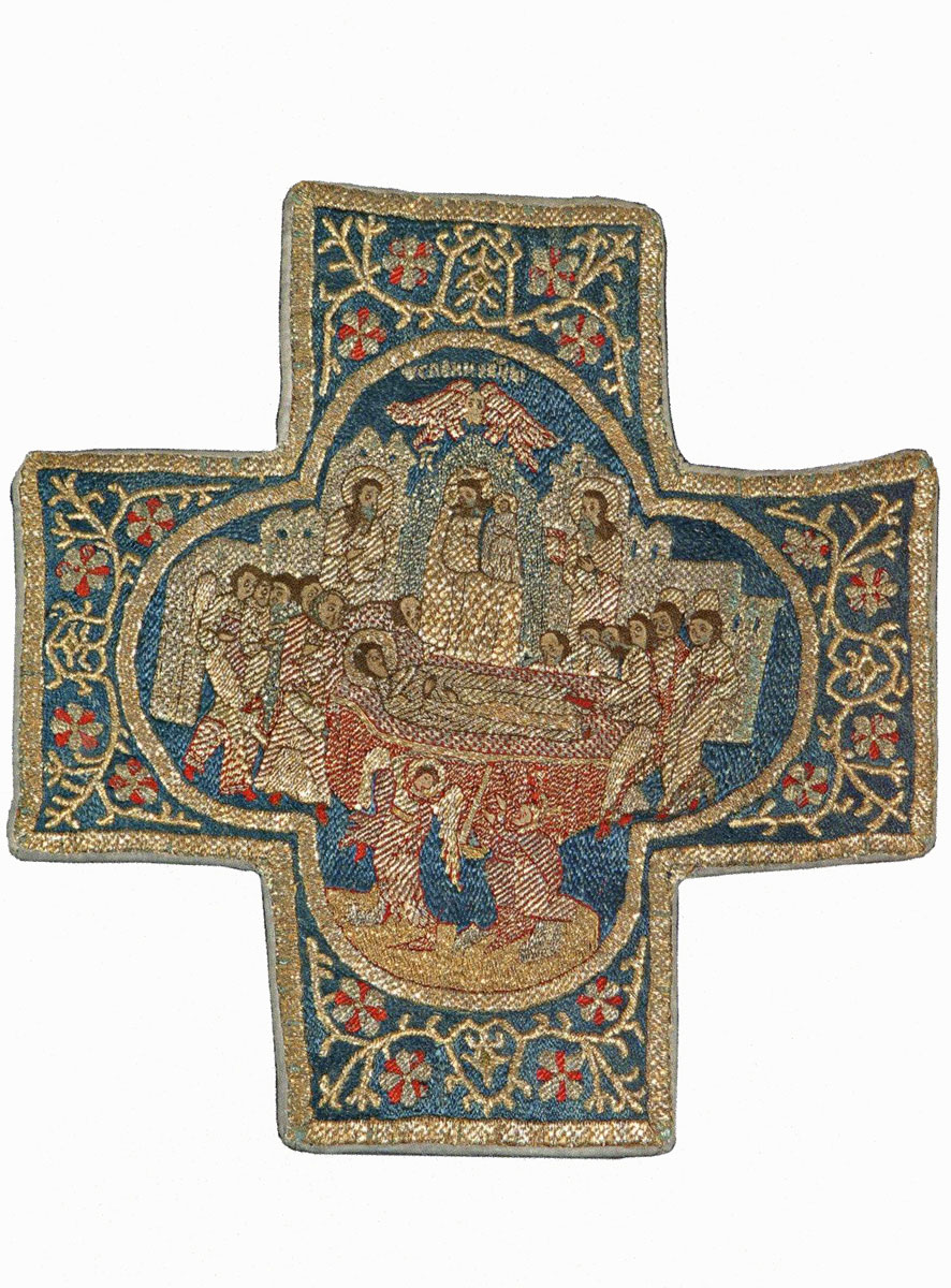 Фрагмент омофора с изображением Успения Богоматери.