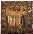 В среднике под изображением Богоматери представлены святые: митрополиты Петр и Алексей, Леонтий Ростовский, Сергий Радонежский, Кирилл Белозерский, Варлаам Хутынский).