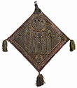 Размеры: 31,0 х 31,0. Атлас, шелковые, золотные и серебряные нити, серебро; шитье, литье, гравировка.