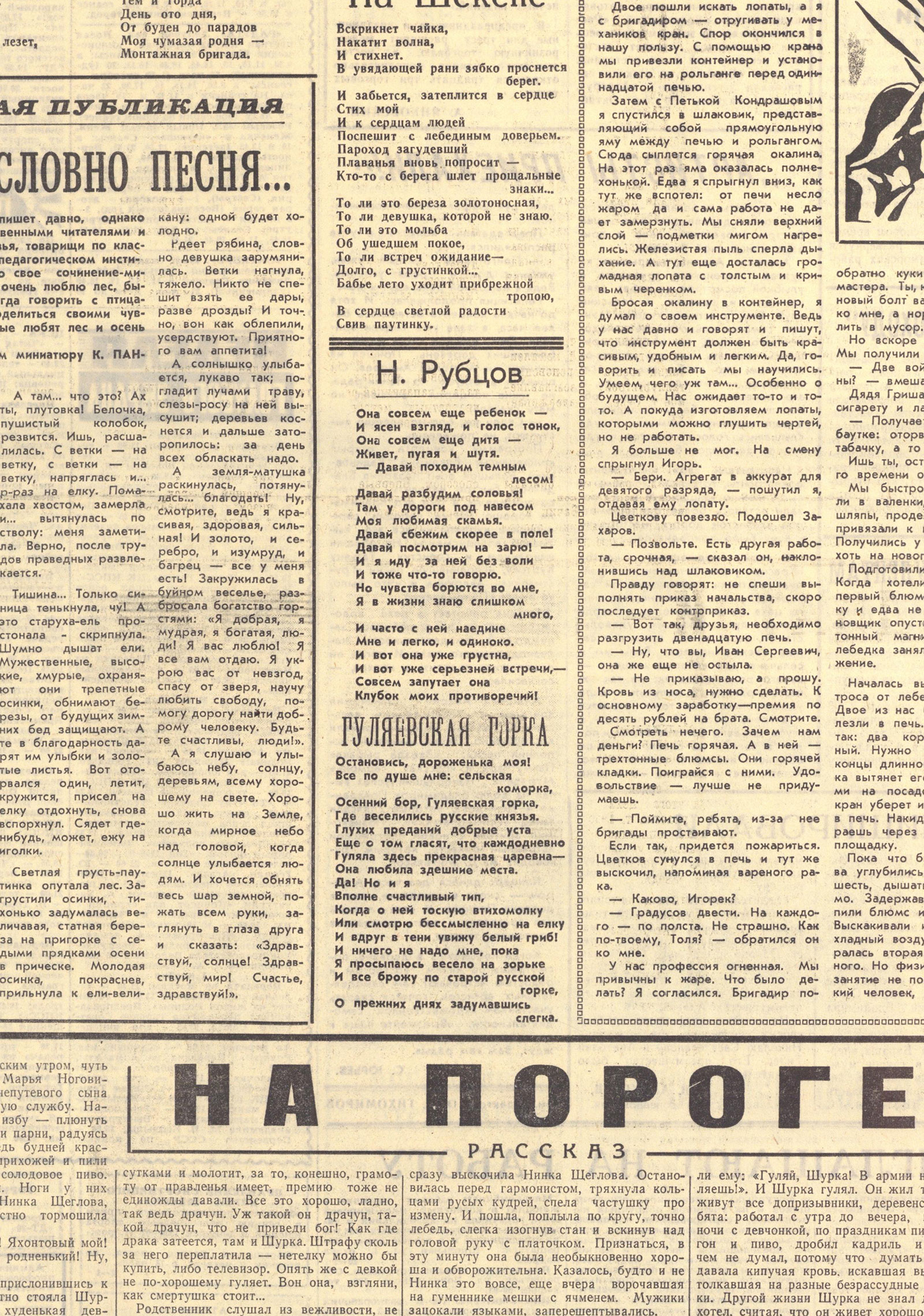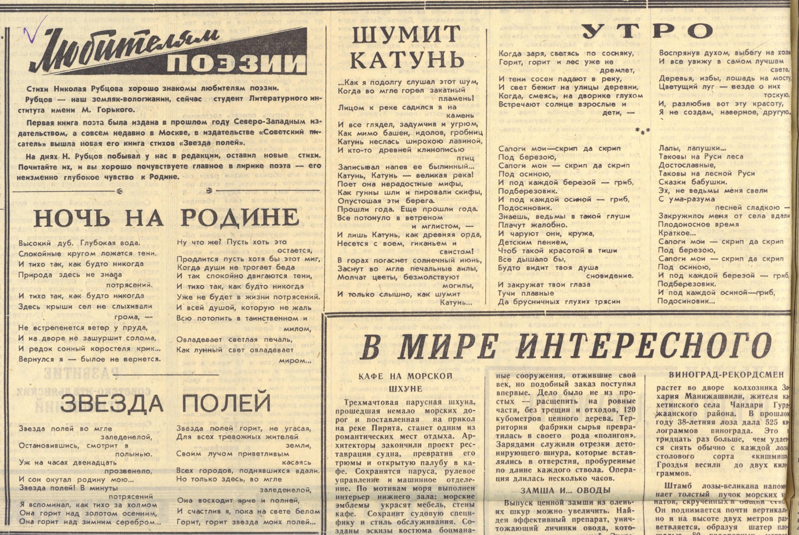 Фрагмент 4 страницы газеты «Коммунист» за 21 мая 1967 г. с публикацией стихов Н. М. Рубцова