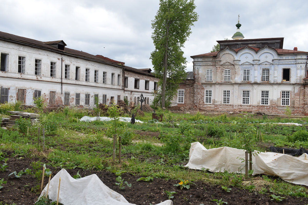 Женское общежитие располагалось поблизости, в бывшем гостином монастырском доме. Там располагался «красный уголок», куда, по воспоминаниям Сергея Багрова, любил захаживать и «побренчать на мандолине» Рубцов. Колокольня, располагавшаяся между общежитиями, представляла собой уже неубедительные руины. При Рубцове её окончательно доламывали на кирпич. Классицистическая постройка с колоннами, вероятно, стала прообразом для стихотворных строк, выстраданных поэтом уже существенно позже: