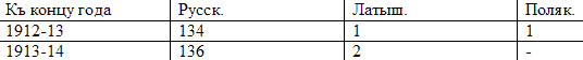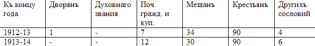 Во-вторую половину 1913-14 уч. года педагогический персоналъ школы состоялъ изъ 12 лицъ, списокъ коихъ приводится въ нижеследующей таблице: