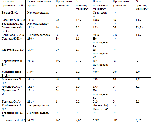 Большой % пропущенныхъ уроковъ В. А. Богоявленскимъ объясняется его болезнью, потребовавшей продолжительнаго стационарнаго лечения.