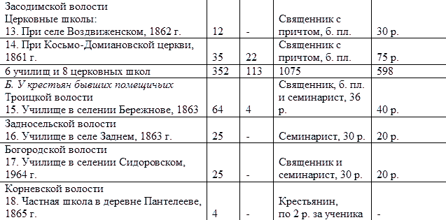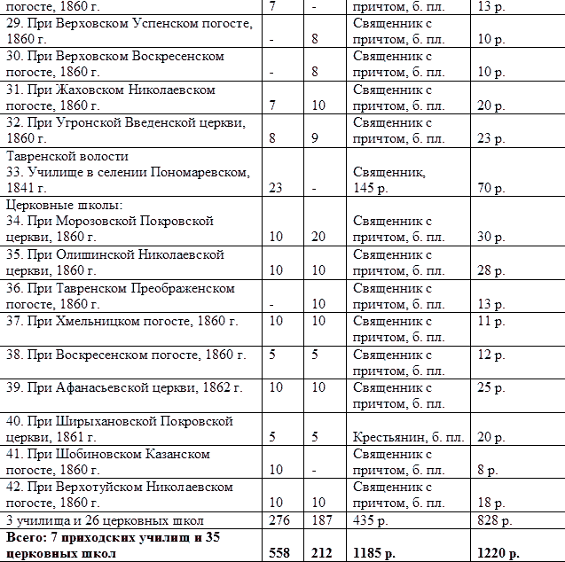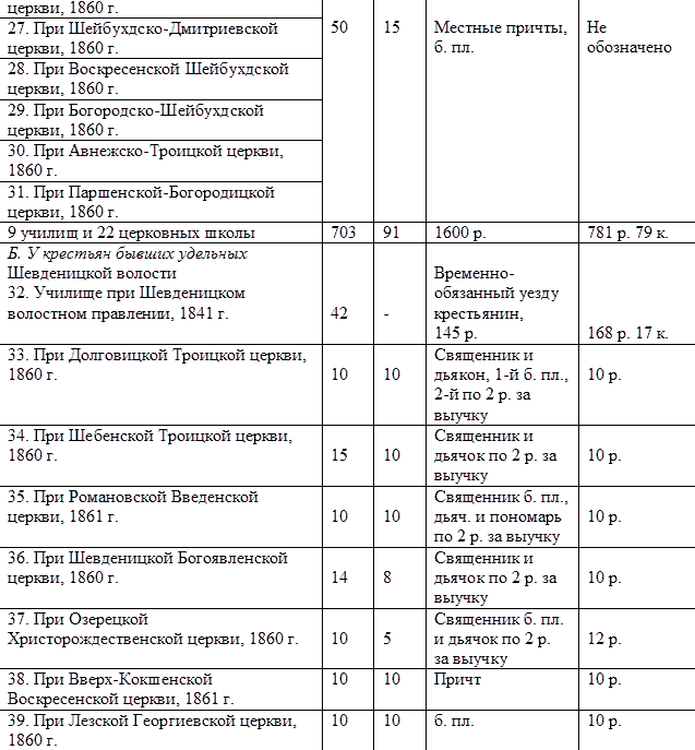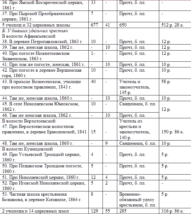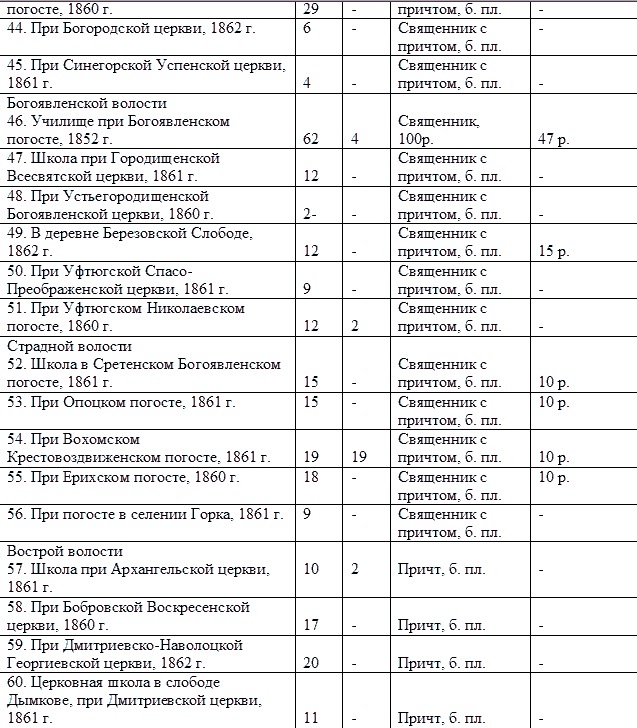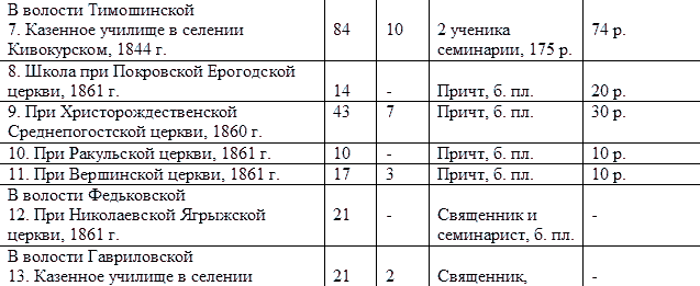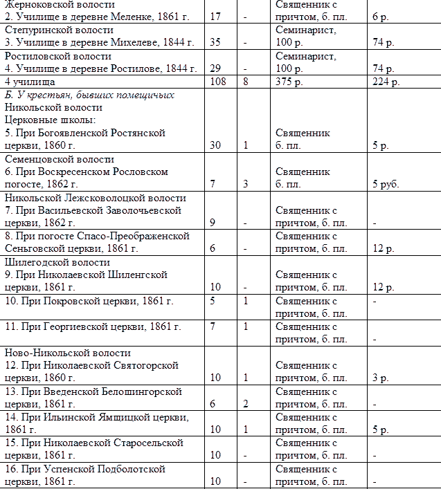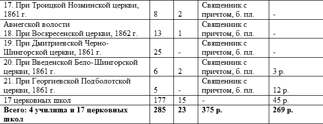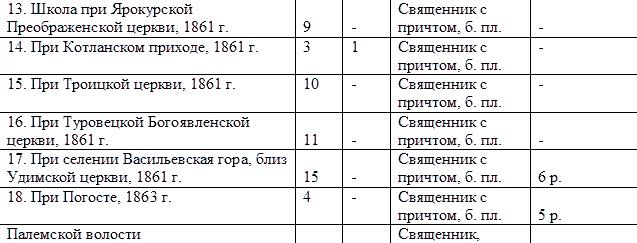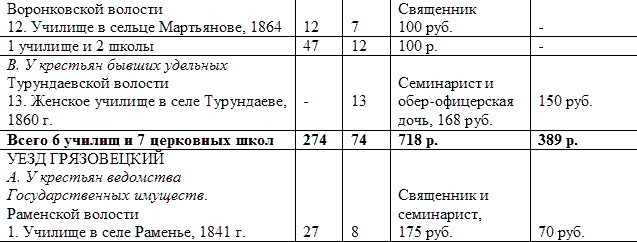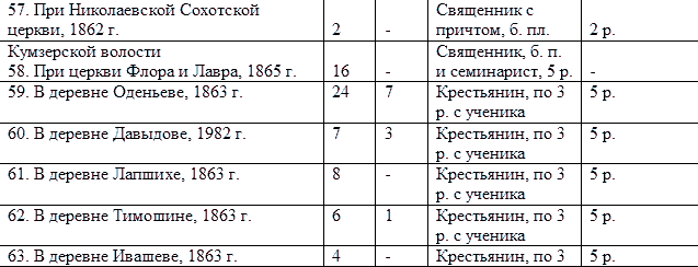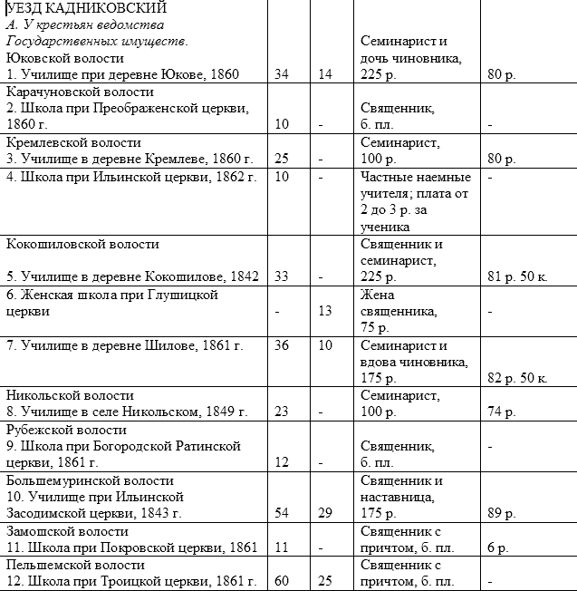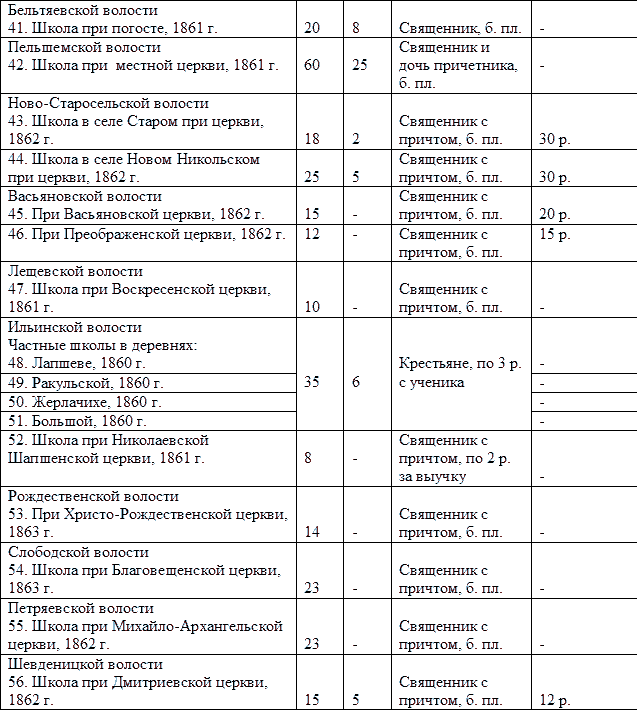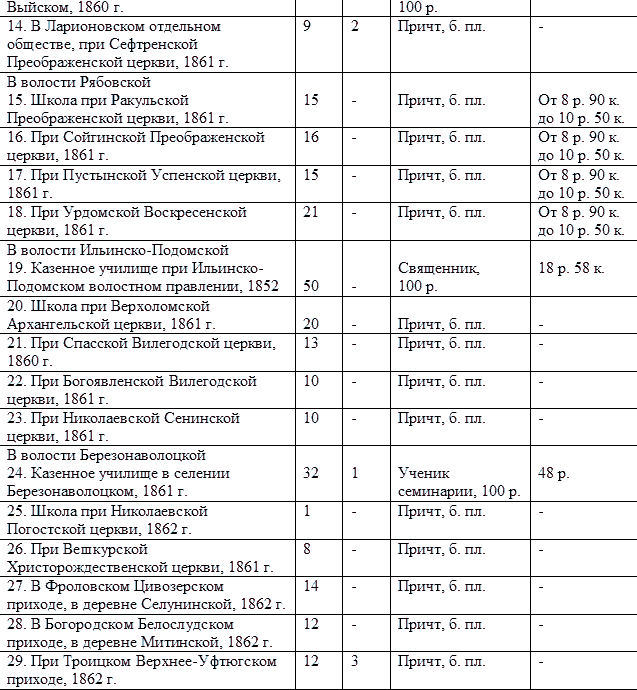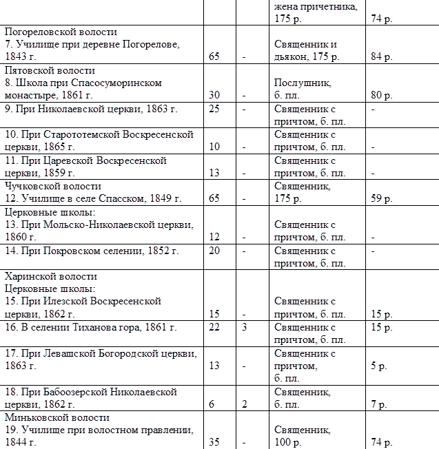 Список сельских училищ и школ в Вологодской губернии // Памятная книжка Вологодской губернии на 1865 и 1866 г. – Вологда, 1866. – С. 1-47.