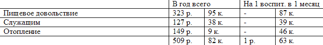 В 1905 г. на тот же предмет израсходовано 81 р. 44 к. На одного воспитанника приходится 81 р. 44 к. : 11 = 7 р. 40 к. в год.