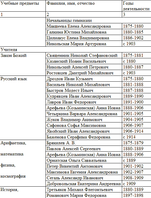 Кузнецова 8 ноября 1874 года земское собрание пожелало открыть в Устюжне трехклассную женскую прогимназию* (Прогимназия - самостоятельное учебное заведение в XIX - начале XX в., состоящее из 4-х первых классов гимназии) с приготовительным классом и выделило для этой цели 500 рублей. 15 ноября Устюженская городская дума приняла постановление о выделении из городских средств сумм по 500 рублей ежегодно на содержание прогимназии1. Но поскольку этих денег было недостаточно, городская дума и земское собрание избрали Попечительный совет, который должен был изыскивать средства "к дальнейшему улучшению прогимназии" и наблюдать за порядком. Членами Попечительного совета были избраны: К. Н. Андреевский, П. Н. Батюшков, М. А. Ефимьев, М. Н. и И. Н. Журавлевы, И. А. Колюбакин, Е. В. Колюбакина, С. Т. Константинов, С. А. Константинова, А. А. Копыльцова, А. М. Копыльцова, П. Г. Лесников, Л. Н. Лесникова, И. И. Неплюев, С. В. Неплюева, протоиерей Ф. М. Михайловский, Я. М. и П. Н. Поздеевы, священник П. И. Попов, Н. П. Ухтомский, П. И. Ушаков, Е. А. Ушакова, Г. А. Чурин, А. П. Шувалов. 14 февраля 1875 года состоялось общее собрание Попечительного совета, избравшее председателем И. И. Неплюева, а попечительницей прогимназии С. В. Неплюеву. Начальницей прогимназии была назначена Е. А. Макшеева. Прогимназия открылась 31 августа 1875 года. Первоначально она располагалась в частных домах, что вызывало серьезные неудобства. Эти помещения не удовлетворяли ни гигиеническим, ни хозяйственным нормам, которые были необходимы. Уже в 1875 году земское собрание ходатайствовало перед губернским земским собранием о выдаче из губернских средств на постройку дома для женской прогимназии ссуды в 5000 рублей сроком на 12 лет2. С получением денег был куплен двухэтажный дом (нынешний его адрес - Торговая пл., 9), который еще в течение нескольких лет приспосабливался для учебных занятий. В 1877 году земское собрание по просьбе Попечительного совета к ежегодной сумме в 500 рублей добавило еще 250 рублей на открытие IV класса3, которое и состоялось в 1878 году. В 1880 году 10 учениц заявили о желании продолжить образование. Решено было открыть при прогимназии педагогические курсы, однако реализовать это решение тогда не удалось. Позднее выпускницы стали оставаться на год в качестве помощниц учительницы приготовительного класса, после чего получали свидетельства на право преподавания в начальных народных училищах. Вопрос об устройстве педагогических курсов вылился в потребность открыть V, VI, VII классы. Устюженское земство постановило с 1883 года вносить ежегодно на создание гимназии сумму 300 рублей серебром и обратилось к губернской управе с просьбой о содействии4. Обращение не увенчалось успехом, но идея преобразовать прогимназию в гимназию осталась. Земство не раз направляло ходатайства в Новгород, но прошения отклонялись ввиду нехватки денег. Тем временем земское собрание продолжало выделять ежегодно 300 рублей на капитал для преобразования прогимназии в гимназию. В 1898 году земство вновь ходатайствовало перед Министерством народного просвещения и губернским земством о преобразовании прогимназии в гимназию. Указывалось, что в случае удовлетворения ходатайства земство предоставит для гимназии каменный трехэтажный дом, отпустит 3000 рублей и ежегодно обязуется выплачивать 2000 рублей пособия5. Согласие министерства было получ