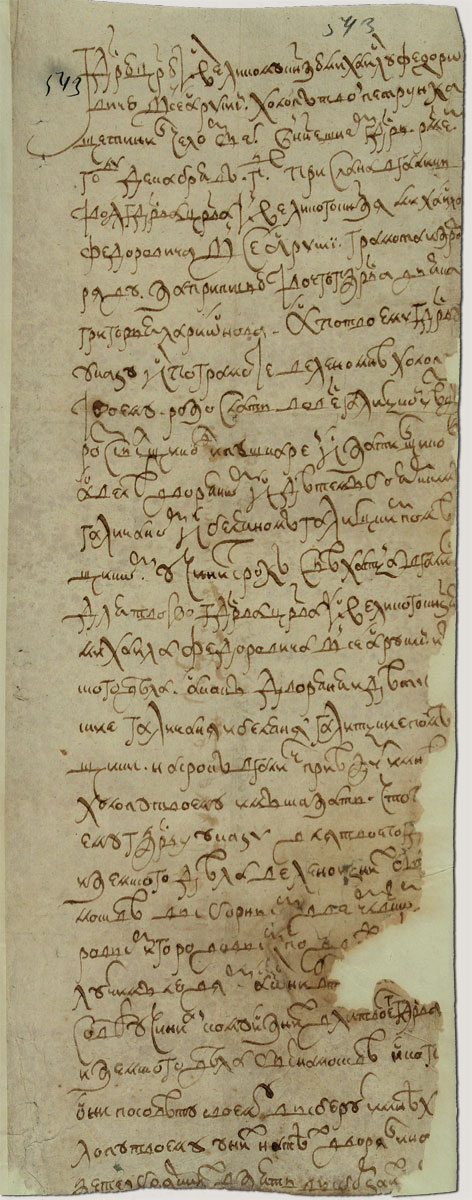 1636 г., декабрь. Отписка из Галича воеводы П.И. Щетинина в Разряд о получении грамоты с предписанием о выборе представителей на земский собор, производстве выборов и высылке выборных в Москву. РГАДА.