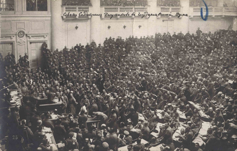 Заседание Совета рабочих и солдатских депутатов в Таврическом дворце.