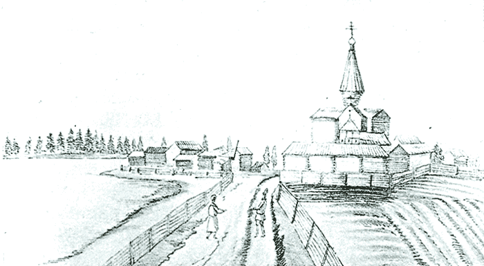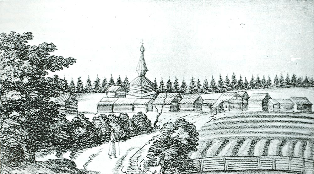 Село Никольское. Рисунок из книги А. Мейерберга "Путешествие в Московию"
