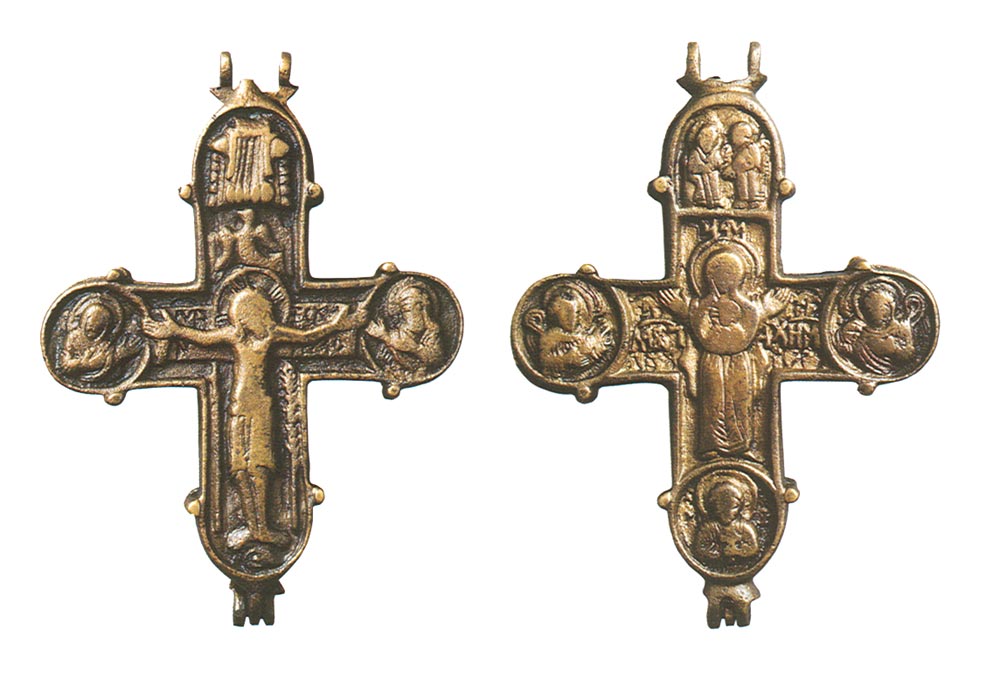 | Крест-энколпион "Распятие Христово. Богоматерь Оранта". 12-начало 13 в. Медный сплав, литье