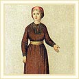 Из альбома А. Мейерберга (раскрашено). Женщина одета в охабень. На голове у нее - род фаты |