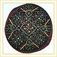 Тафта, пряденые золото-серебряные нити, цветные шелковые нити. Плетение, шитье (после реставрации). Извлечен при раскопках некрополя у стен собора Симонова монастыря в Москве