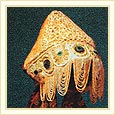 Девичий головной убор. Вторая половина 18 в. Северные губернии России. Шелковая ткань, рубленый перламутр, перламутровые плашки. Низание, вышивка