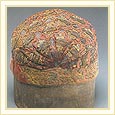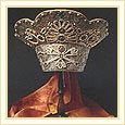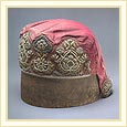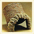 Женский головной убор. 17 в. Ткань - рубчатый шелк типа репса; жемчуг, пряденые золото-серебряные нити, канитель. Шитье, низанье
