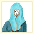 Из альбома А. Мейерберга (раскрашено). На голове у нее - род фаты |