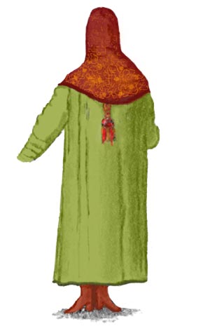 Головной убор замужней женщины. Реконструкция Б. А. Рыбакова