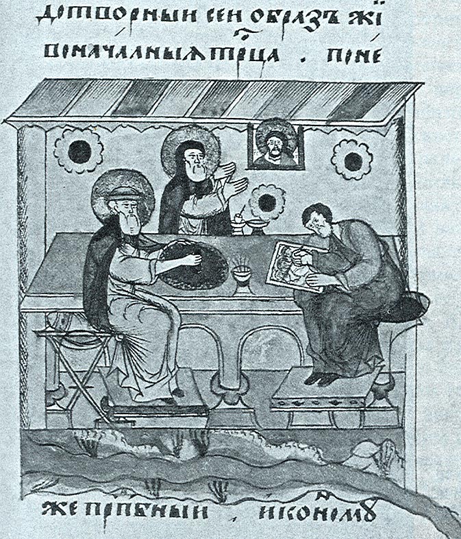 | Работа живописца. Миниатюра из "Жития Антония Сийского". 1648 г.