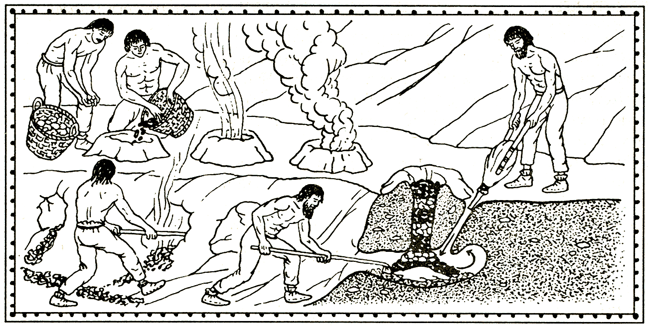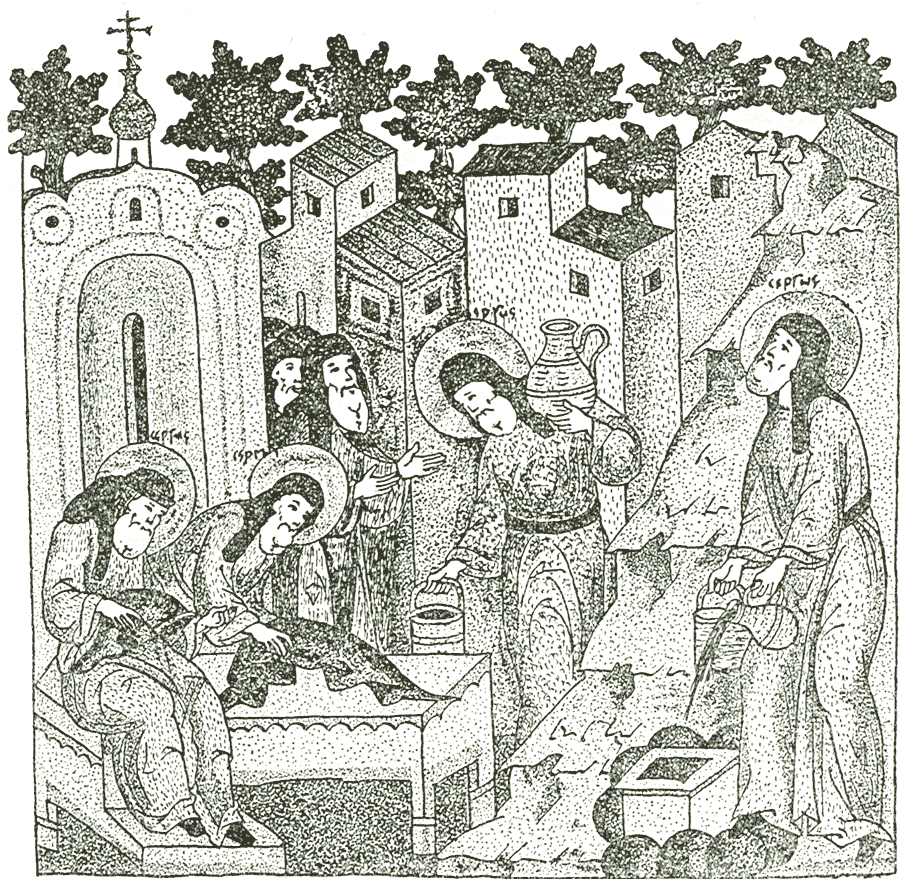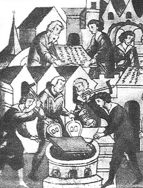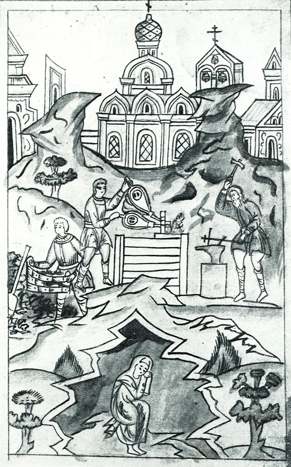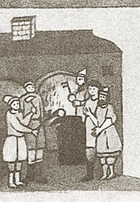 Солеварение. Миниатюра из рукописи "Житие Зосимы и Савватия". 17 в.