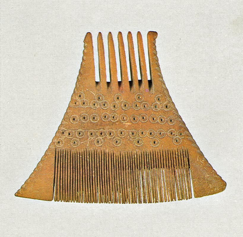 Гребень двусторонний, урашенный циркульным орнаментом. Кость, резьба. Ширина 10,5 см. Середина 12 в.