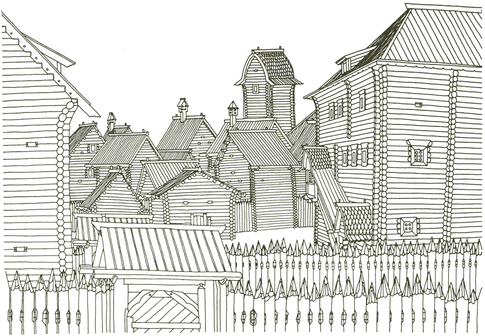 Новгород. Фрагмент застройки Неревского конца XIV в.