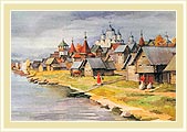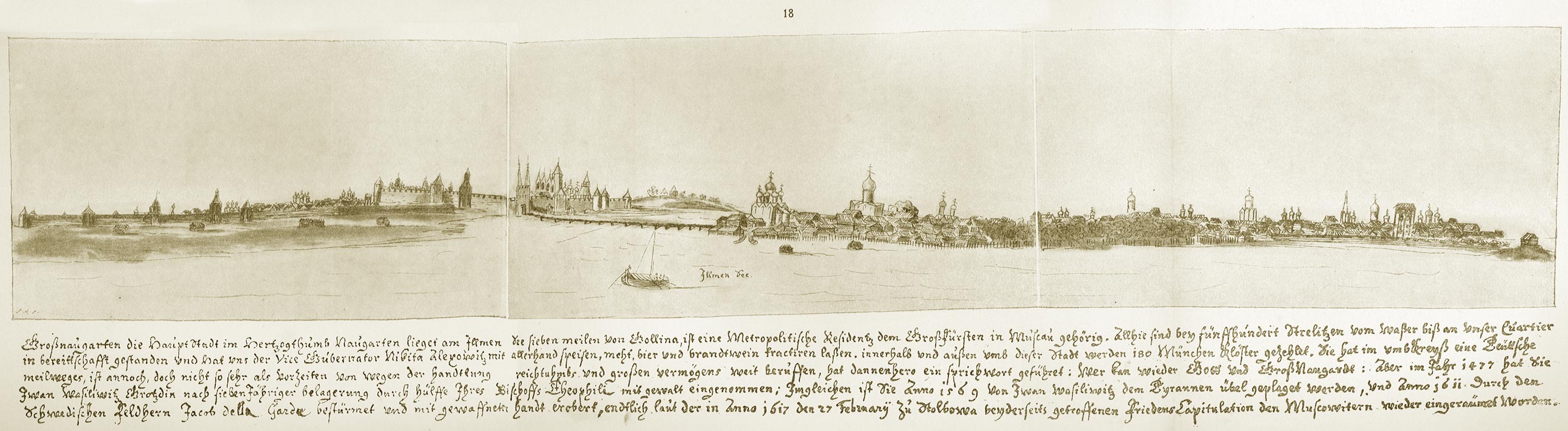Вид Великого Новгорода в 17 веке. Из книги А. Олеария