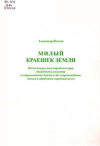 Носков А. К. Милый краешек земли [Ноты] : песни для рус. нар. хора, ансамблей и солистов в сопровожд. баянов и без сопровожд. Записи и обраб. нар. песен / А. Носков ; Арханг. обл. творч. об-ние «Нар. культура». – Архангельск : Издательство «Правда «Севера», 2000. – 117, [1] с.
