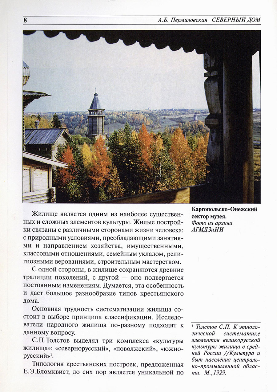 Подготовленная в жанре каталога книга «Северный дом» раскрывает особенности крестьянского жилища Русского Севера на примере памятников Архангельского государственного музея деревянного зодчества и народного искусства «Малые Корелы».