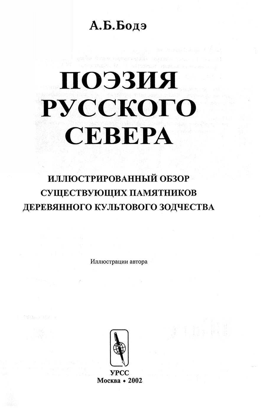 Бодэ А. Б. Поэзия Русского Севера : иллюстрированный обзор существующих памятников деревянного культового зодчества / А. Б. Бодэ. – М. : Эдиториал УРСС, 2002. – 211 с.