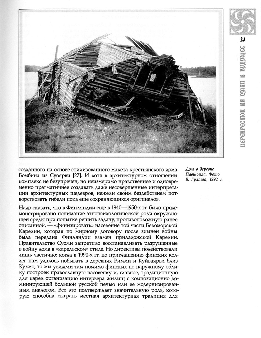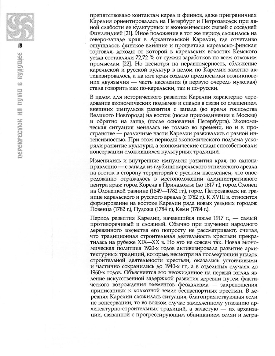 Монография посвящена традиционному жилищу карел и важнейшим аспектам исторического развития сельской среды обитания на территории современного этнического ареала карельского народа – заселению, формированию систем расселения и особенностям объемно-планировочных структур деревень.