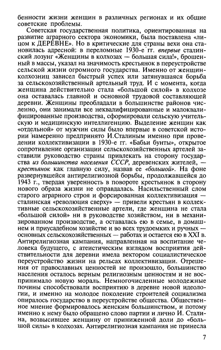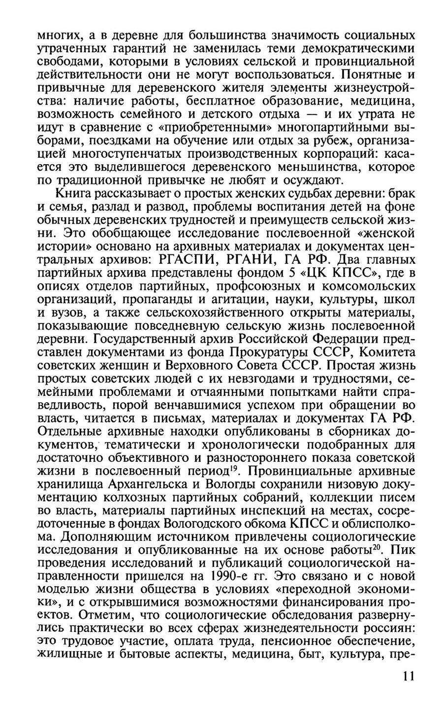 Книга рассказывает о простых женских судьбах деревни: брак и семья, разлад и развод, проблемы воспитания детей на фоне обычных деревенских трудностей и преимуществ сельской жизни. Это обобщающее исследование послевоенной «женской истории» основано на материалах центральных и региональных архивов, социологических обследованиях, крестьянских письмах. На протяжении советской истории женщины на селе являлись главной трудовой и общественной силой деревни. Это касалось сельскохозяйственного производства, личного подсобного хозяйства и формирования общественного мнения на селе. В различные периоды влияние женщин на жизнь деревни ослабевало или усиливалось и зависело от миграции мужчин, выбора между работой в общественном хозяйстве и домом, образования крестьянок и государственной политики в области охраны материнства и детства. Сегодня именно сельские женщины являются опорой для развития аграрного сектора: их большинство, к ним переходят властные полномочия, на них надеются деревня и Россия.