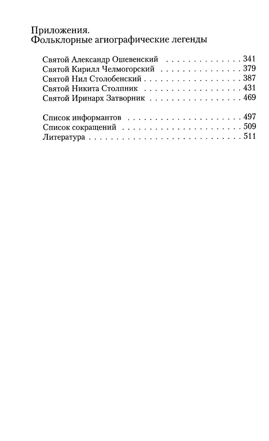 Книга представляет собой исследование культа народных севернорусских святых: обрядов, совершаемых у «местночтимых святых», соотношения их народного почитания и церковной традиции. Автор наглядно показывает, как возникали фольклорные версии житий, и устанавливает источники житийных и легендарных текстов.