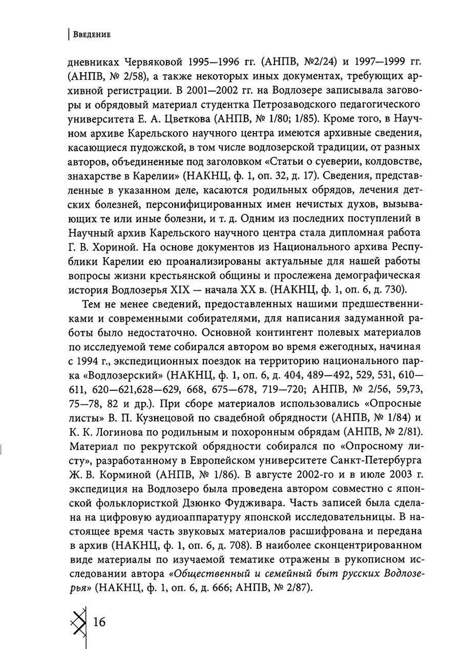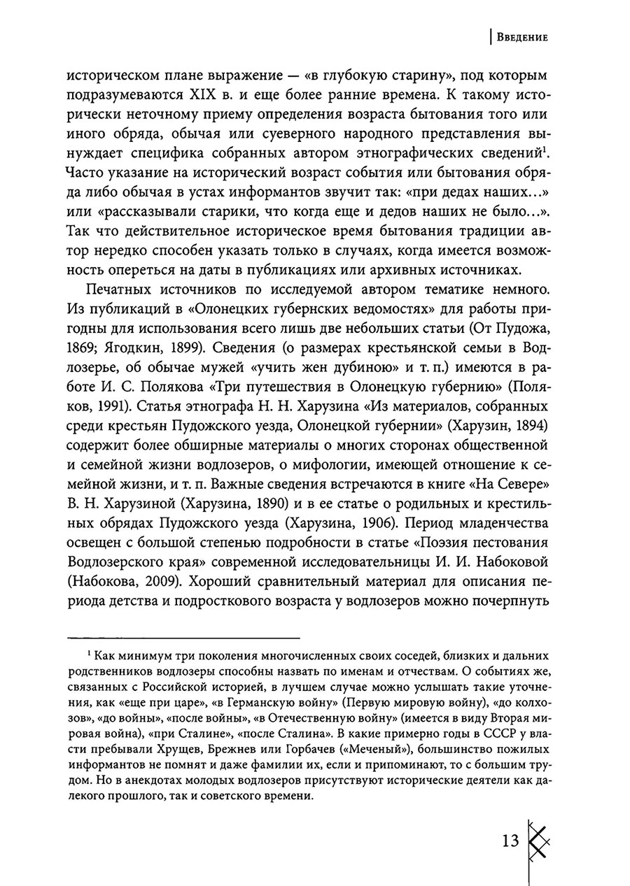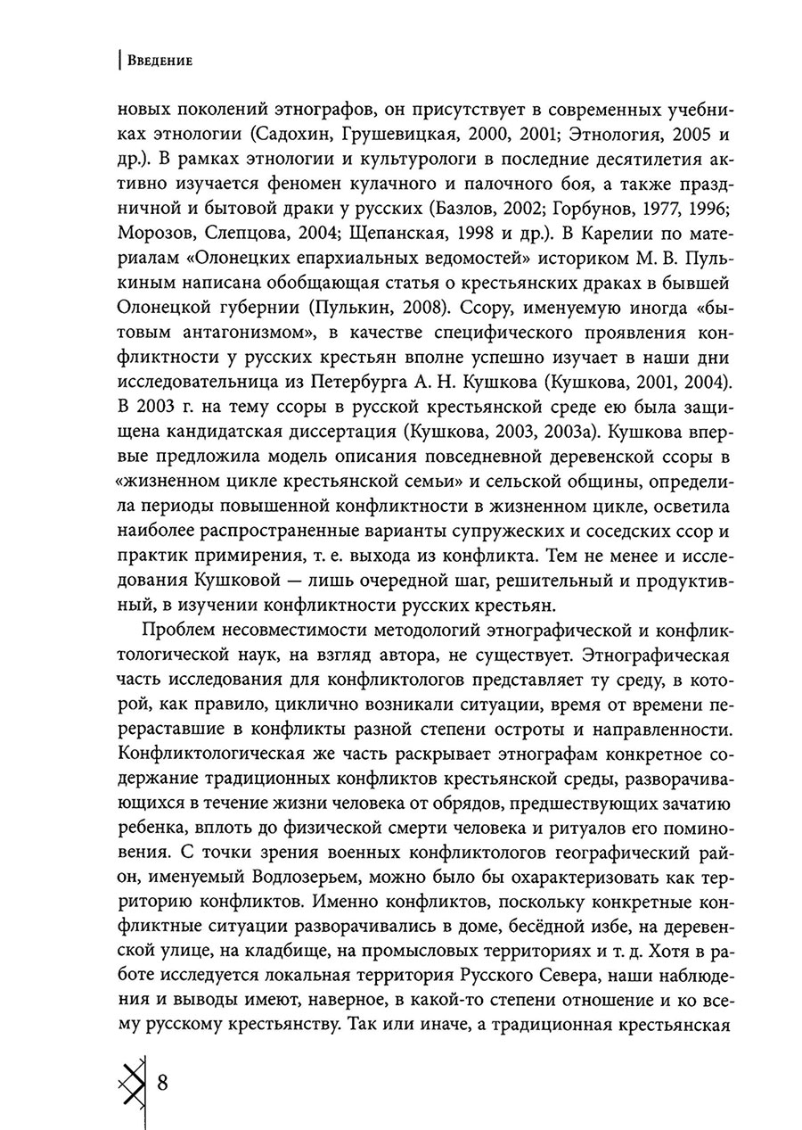 Монография является первым в истории отечественной науки трудом, написанным на стыке двух наук – этнографии и конфликтологии, посвященным исследованию традиционных обрядов, обычаев и конфликтов полного жизненного цикла на примере русских, проживающих в Карелии, на берегу озера Водлозеро в Пудожском крае. В работе исследуются обычаи, обряды и конфликтные ситуации, сопровождавшие жизнь человека на каждом ее этапе от предпосылок рождения физически здорового и социально полноценного ребенка до физической смерти человека и организации ритуально «правильного» перехода в мир иной для загробного существования. Значительное место в работе занимает описание старинных заговоров и магических ритуалов и их трансформации с XIX века по настоящее время.