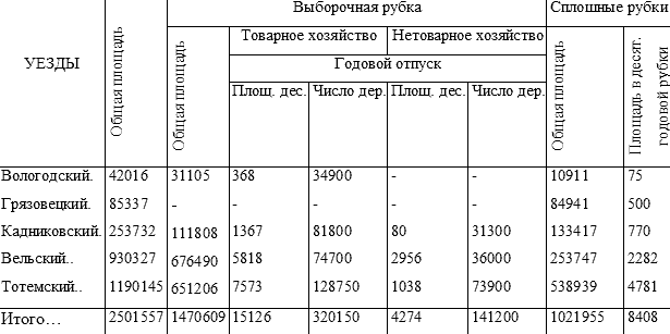Несмотря, однако, на сравнительное обилие водных путей, благоприятствующих успешному ведению лесного хозяйства, многие неблагоприятные условия сложились так, что в Вологодской губернии до настоящего времени ведется крайне экстенсивное лесное хозяйство.