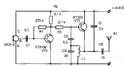 Рис. 13 - r268.tif Схемы простейших радиозакладок (f-66-74 МГц) (продолжение) в) L1-6+6B 0,4 d=4мм.