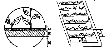 Землю для посадки готовят заранее, перекапывают почву на штык лопаты и делают грядки. Насыпают на них смесь торфа с песком (1:1) слоем 10-12 см, выравнивают граблями, поверх рассыпают слоем 2 - 3 см крупнозернистый речной песок, снова разравнивают грядки и слегка трамбуют. Утром перед посадкой почву хорошо увлажняют и перед тем как посадить черенки, поливают раствором минерального удобрения: на 4 - 5 м2 разводят в 10 литрах воды одну чайную ложку (10 - 12 г) простого суперфосфата. Сажают черенки вертикально на глубину 2,5 - 3 см (до черешка нижнего листа) на расстоянии 5 - 7 см между рядами и 5 см в рядах. Если у вас нет стимуляторов роста, высаживать черенки лучше вечером.