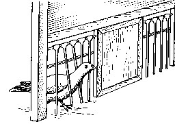 При разработке проекта питомника учитывают размеры дверей, световых окон и окошечек (летков) для выхода голубей. Обычно двери делают высотой 150-180 см и шириной 55-70 см. Размер окошечек для выхода голубей делают соответственно породам, которые будут содержаться в питомнике. По высоте окошечки могут быть от 10 до 25 см, по ширине - от 10 до 20 см. В каждом отделении лучше иметь два окошечка. Эти окошечки размещают по отношению к полу с учетом того, какая птица будет содержаться в питомнике. Для голубей летных пород их можно оборудовать на высоте 1-1,5 м от пола, для голубей слабо летающих (мясные и некоторые декоративные) на высоте 15-20 см от пола. Очень удобно иметь регулируемые окошечки для входа и выхода голубей, в зависимости от потребности, а для спортивных голубей это необходимо. Для этого в окошечке монтируется несложное приспособление или изготавливается вставная рамка. Это приспособление представляет собой подвижные (качающиеся) прутки из толстой проволоки и переставляемый ограничитель (рис. 129).