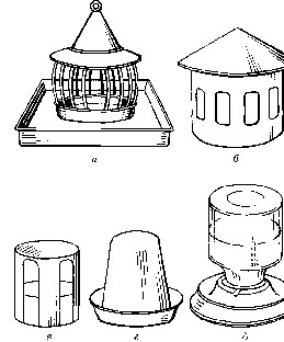 Корм для голубей кладут в специальные кормушки (рис. 136, о, б). Применяются кормушки-автоматы, их используют обычно в период выкармливания птенцов мясных голубей (промышленных). Минеральные корма кладут в отдельные кормушки (рис. 136, в). Количество или величина кормушек зависит от количества голубей.