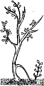13. Кабудати (рис. 150) - при этом стиле многоствольное дерево представляет собой оригинальную композицию из дерева, состоящего из двух и более стволов. Рекомендуется выращивать деревья с нечетным количеством стволов. Для достижения многоствольности несколько саженцев сажают в одну лунку.