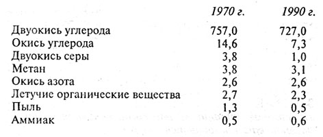 Чтобы опровергнуть это утверждение, приведем таблицу выбросов в воздух важнейших контаминаторов (в миллионах тонн):
