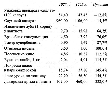 Даже в больницах, где услуги по оказанию помощи больным резко возросли, цены выросли не так уж значительно. Не забудем, что день пребывания в больнице в наши дни - это нечто совсем иное, чем 40 или 50 лет тому назад. А ведь если кто-то 40 лет назад покупал "фольксваген-жук", а теперь хочет "мерседес", то он не должен жаловаться на увеличение цены.