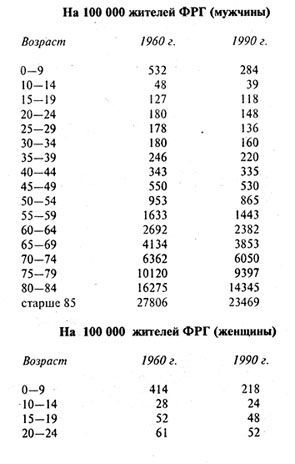 Нет сомнений, что в последние годы и десятилетия опасность заболеть раком возросла. Это отнюдь не означает, что рак стал опаснее. Об этом свидетельствует таблица, в которой приведены данные, сколько человек умерло от рака в 1960 и 1990 гг.