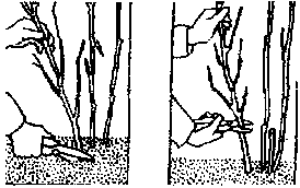 Когда сбор урожая завершен, вырезают отплодо-носившие побеги и одновременно проводят окончательную нормировку побегов в кусте. Побеги вырезают у самой земли, не оставляя пеньков.