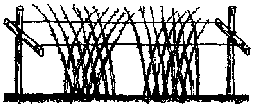 | Еще один способ подвязки малины - шпалерный наклонный двухсторонний |