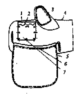 Довольно часто для сбора ягод применяют рукавицу (рис. 7) из плотного материала, например, брезента (4), с гребенкой (I) с зубьями (2), прикрепленной к лицевой стороне пластмассовой пластины (7). Кроме того, рукавица снабжена улавливателем в виде рукава (5), соединенного с тарой. Рукав кромкой сзади крепится к рукавице наглухо, а спереди - к гибкому каркасу (6). Чтобы предохранить большой палец руки и плотно, но не жестко прижимать ветки к гребенке, сторону (3) большого пальца рукавицы, обращенную к гребенке, выполняют из более плотного материала, например, кожи.