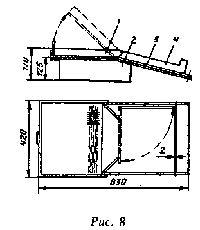 Очищаю плоды облепихи от листьев и мусора не вручную, что требует немало времени, а с помощью приспособления из доски и фанеры. Это ускоряет очистку в 4 - 5 раз. Конструкция настолько несложная, что может быть изготовлена садоводом в домашних условиях (рис. 8).