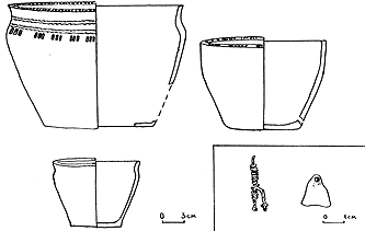 Керамика и бронзовые вещи из раскопок поселения Царева-I